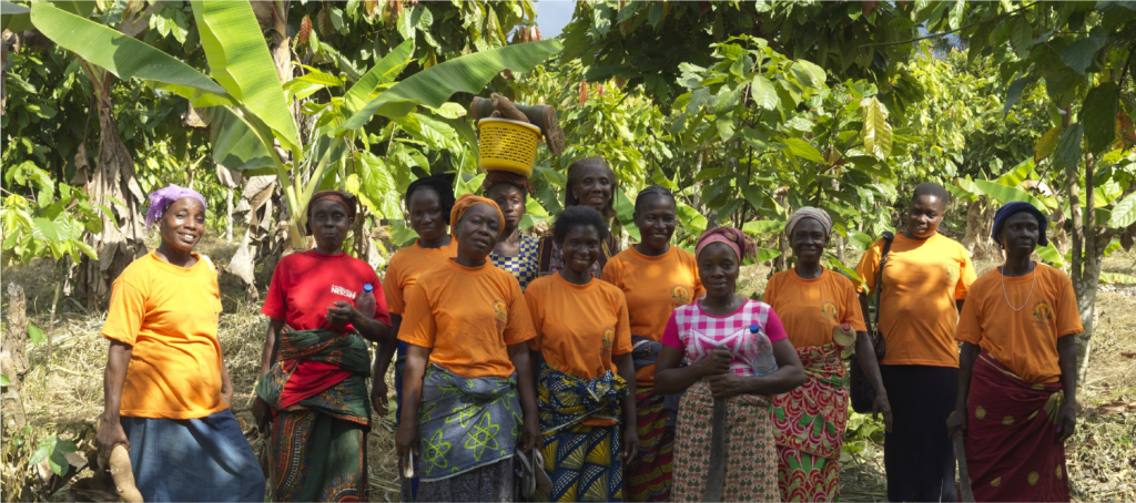 Rosine and the Cayat women cocoa farmers, Cote d’Ivoire. (photo and video credits: Fairtrade Foundation)
